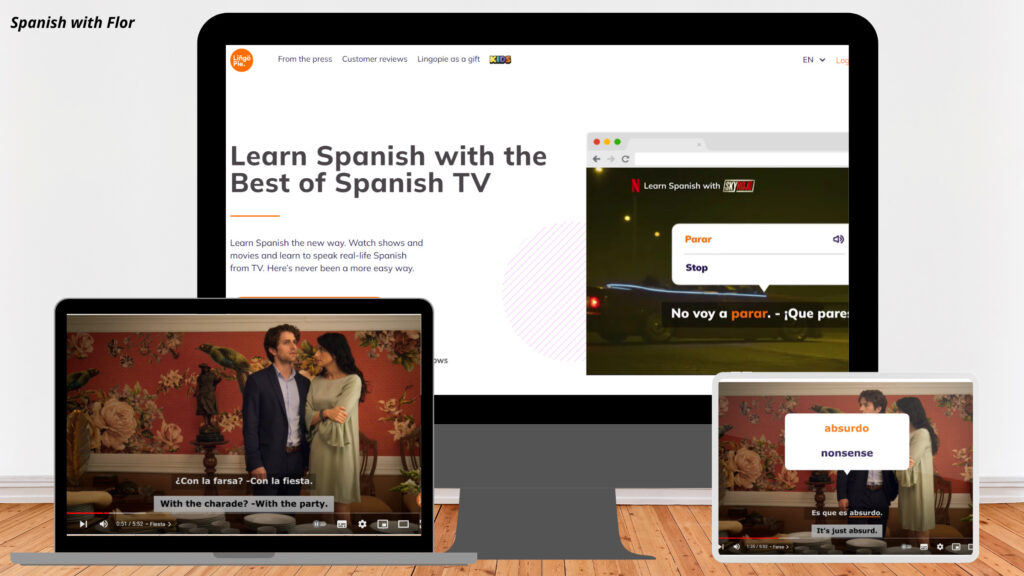 Lingopie offers a unique approach to learning Spanish by using real TV shows and movies with interactive learning features. Users can watch Spanish TV shows with Spanish and English subtitles and get instant translations of any word by clicking on the subtitles. This immersive method aims to enhance language acquisition through authentic cultural content. Make sure you choose the right level when you sing up!